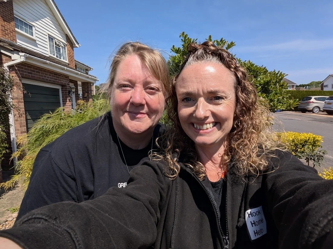 This was one of the happy days that the lovely Helen and I were in the same place at the same time. These days she is generally looking after people in Hartley Wintney and I am looking after people in Hook. Most people we go and see once a week but we both have people who we see more than once a week. Sometimes we go in and help people for short term stints when they have had an operation. Sometimes we visit people when their families are away. We go in, maybe take some shopping, have a cup of tea and a chat, and let the family know they are well and happy.